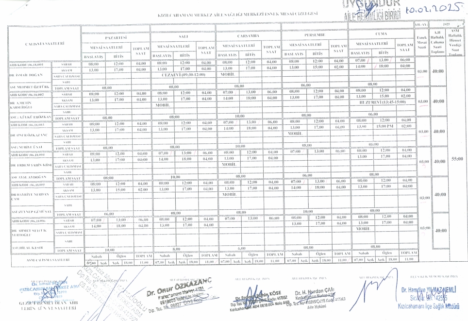 Çalışma Saatlerimiz